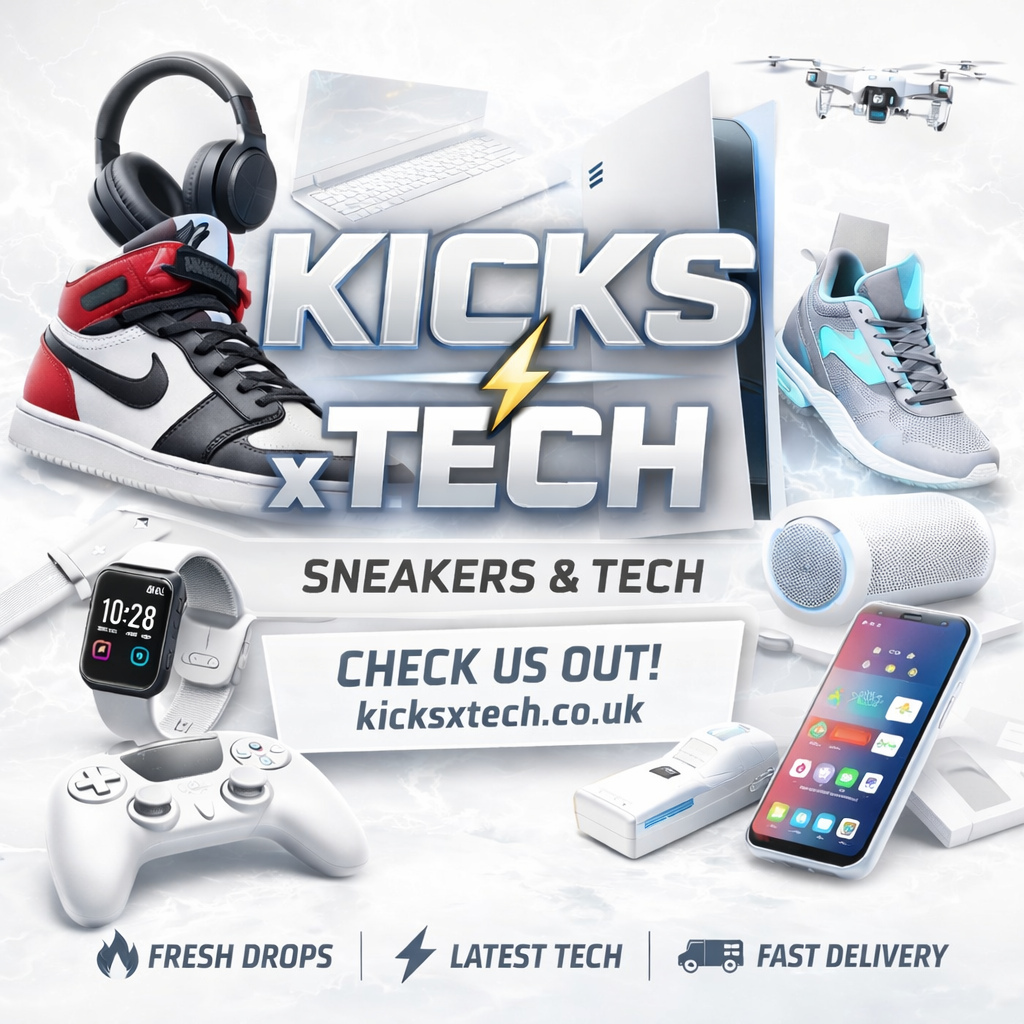 Kicks X Tech is your one-stop destination for premium trainers and cutting-edge smartphones, all in one place. We source the latest footwear and tech essentials to deliver quality products at fair, competitive prices, no inflated costs, no compromises. Most of our items are also available on eBay and Vinted, but shopping directly through our website gives you the edge: early access to products, slightly lower prices by saving on platform fees, and free UK shipping. All shoes come new in box and all phones fully tested before shipping.